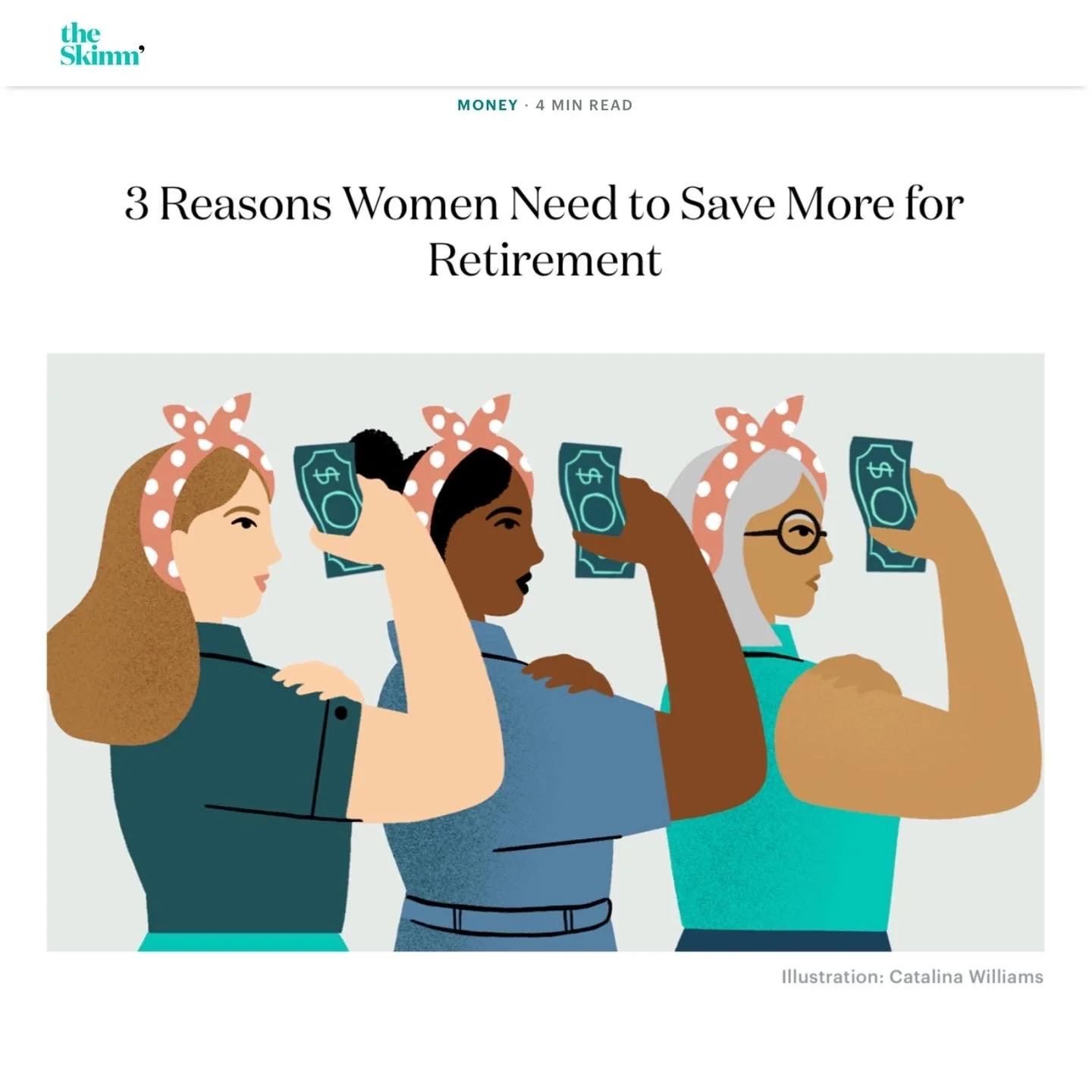 Editorial Illustration. Editorial illustration for TheSkimm on the reasons why women should save more for retirement.